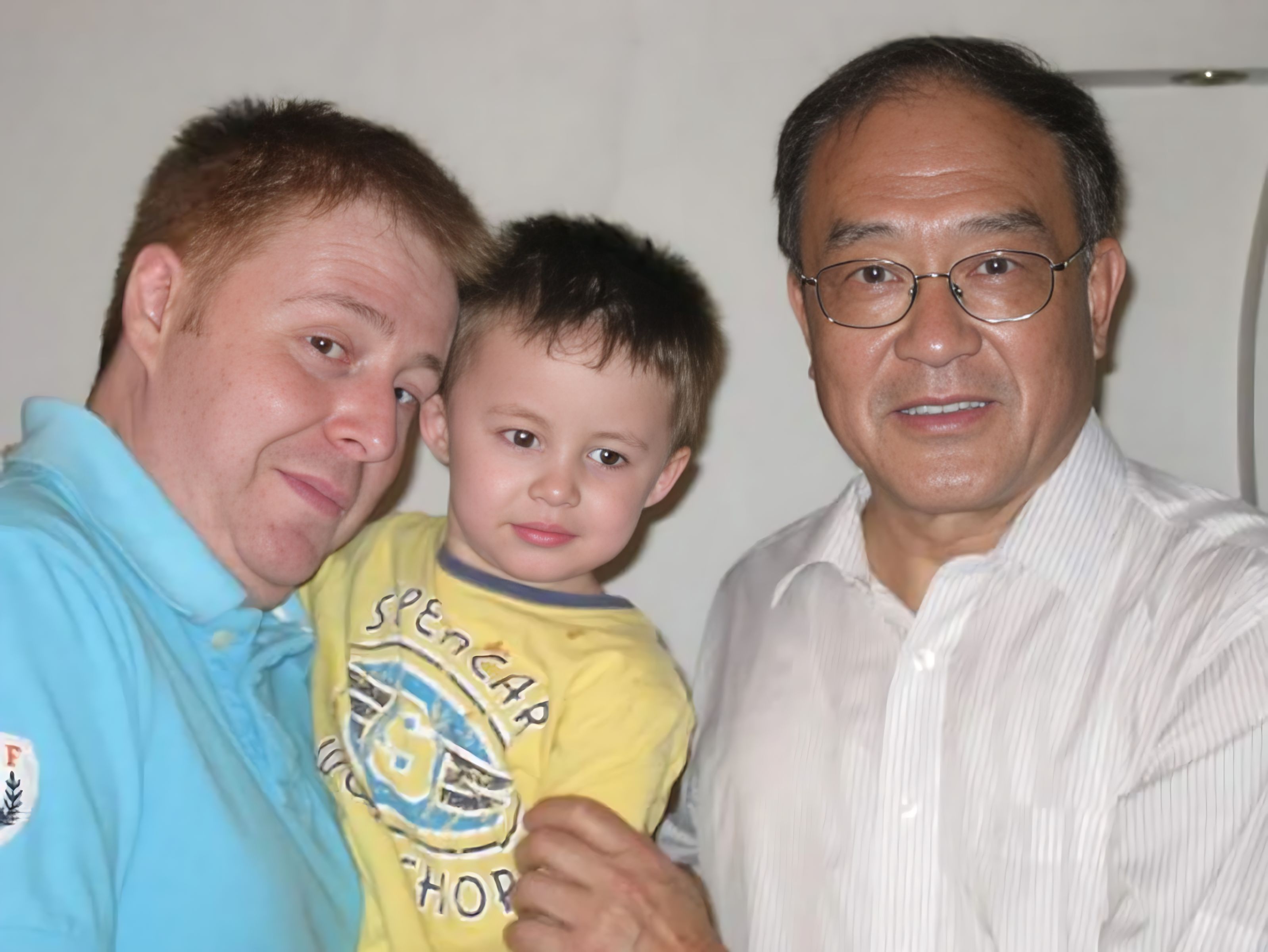 在深圳和方芳的儿子及丈夫合影。 丈夫是西班牙人,在深圳作生意。其时方芳正在西班牙,所以未能见到。